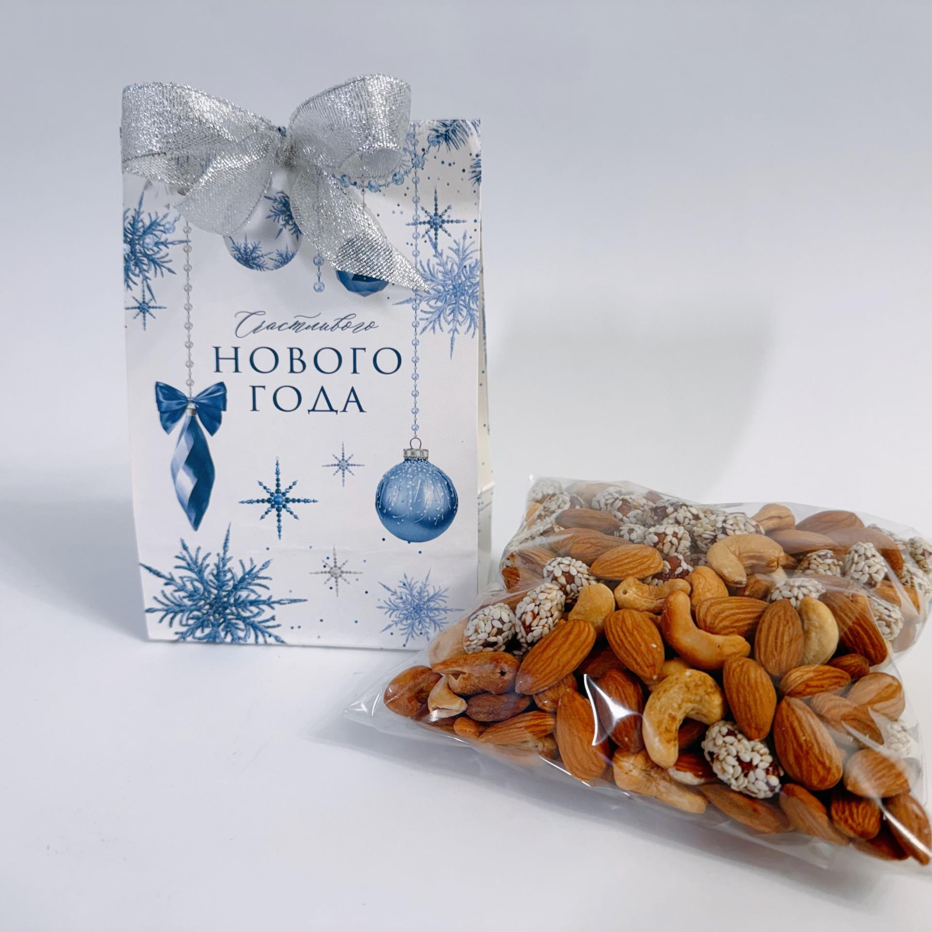 Пакетик обжаренных орешков кешью, миндаля и арахиса в кунжуте станет прекрасным подарком для коллеги, соседа или просто приятного человека, которого хочется порадовать в новый год символическим подарком, не лишенным индивидуальности.